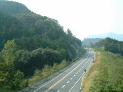 大分自動車道をまたぐ橋の上から見た臼杵市方面。 片側一車線でこの付近には追い越し車線があるが車の通りは少ない。 −3− |