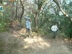 曲がりくねった石ころの出ている登山道を少し登れば鎮南山と塔ノ尾との分岐に出る。 −13− |