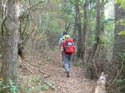 緩やかに谷間を登っていた道から少し急に登ったところで尾根を登る登山道と合流する。 −7− |