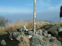 ピークの上から遙か向こうには由布岳が見え、目の良い人ならば写真中央の福万山頂の標柱を見ることが出来る。 −14− |