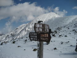 | 市町村合併により直入郡久住町から竹田市の山になった久住山、今でも人気は高く雪山に登る人も多くいます。登山道は南側の南登山口や赤川、北側のすがもり越や牧ノ戸峠からなどありますが、牧ノ戸峠からが登りやすく周りの山々の展望も良くオススメのコースです。最近瀬ノ本から少し牧ノ戸に登ったところから扇ヶ鼻を経由して登る登山道もできたようですがまだ登ったことはありません。 くじゅう連山には毎年のように登っていますが、久住山に登ったのは6,7年ぶりになってしまいます。昨年の冬は中岳、その前は扇ヶ鼻まで、平成16年は吹雪のためくじゅう分れの避難小屋から引き返していました。久住山頂までに登ったのは2001年10月以来です。 この日も冷え込みが厳しく瀬ノ本から牧ノ戸峠まではチェーン規制が出ていて、登り始めた頃は雲が多くて涌蓋山や三俣山など近くの山も雲に隠れていました。 扇ヶ鼻から西千里あたりまで登ると次第に雲はなくなり、久住山頂をかすめて飛ぶ熊本空港に向かう飛行機も見えるようになってきました。避難小屋で休憩し、久住山頂まで登ると久住高原を挟んで祖母・傾山や阿蘇五岳がすばらしく展望できました。快晴でしたが気温は低く避難小屋まで降りて昼食を済まし下山しました。牧ノ戸峠から休憩を含め沓掛展望台まで25分、扇ヶ鼻分岐まで1時間15分、避難小屋まで1時間40分、山頂まで2時間15分くらいでした。 |