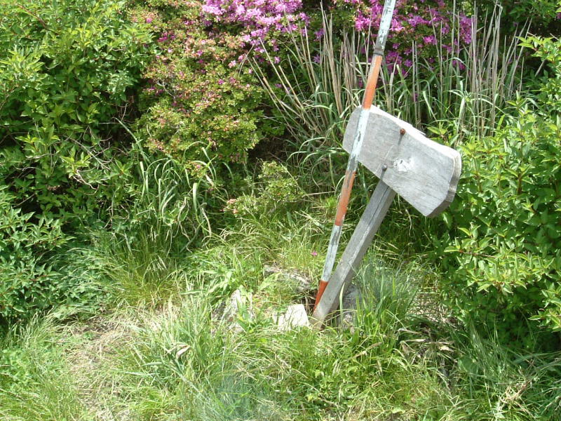 猟師岳(猟師山)の山頂は周りを灌木に囲まれた広場になっていて、少し南に下った方が展望が良かったです。 3等三角点の名称は「猟師岳」となっています。 −18− |