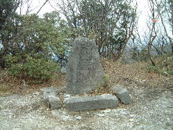 | 御前岳の山頂には「景行天皇御還暦?」と書かれた石碑が建っていました。 ここからも熊本県の八方ヶ岳方面がよく見え、雲仙の普賢岳も見えました。 −23− |