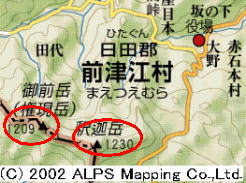 | 日田郡前津江村 釈迦ヶ岳(1230.8m) 御前岳(権現岳)(1209m) |
