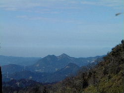| 山頂手前から矢部村方面の山がよく見えました。 この山にはまだ登ったことはありませんが、黒木町と星野村との境界付近にある、石割岳(942m)と平野岳でしょうか。 −7− |