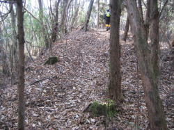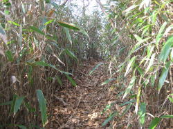登山道は杉の植林からすぐに灌木の中を歩くようになり、降り積もった落ち葉の中を歩くようになります。 −7− |