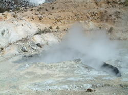 少し登ると右下に大きな音を立てながら激しく噴煙の登る噴気口が見え、時折見える底の方ではブクブクと大きな気泡が確認できる。 −7− |