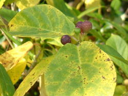 登山口から30分ほど歩くと山の南側に出て、あたりが少し明るくなる。 日当たりが良いところはハゼの木などの紅葉が見られた。 −13− |