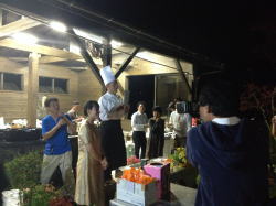 新郎新婦が主賓席につき、焼肉披露パーティーの始まりです。 (このあとあまりのおいしさに写真が撮れていませんm(_ _)m) −28− |