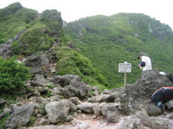 クサリ場を過ぎて少しきつい上りがありますが、そこを過ぎるとミヤマキリシマの株の中の歩きやすい登山道になります。 −13− |