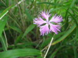 | 合野越えの上でカワラナデシコ | ジグザグの登山道でイヨフウロ | ランの仲間でしょうか | マタエの下でワレモコウ |