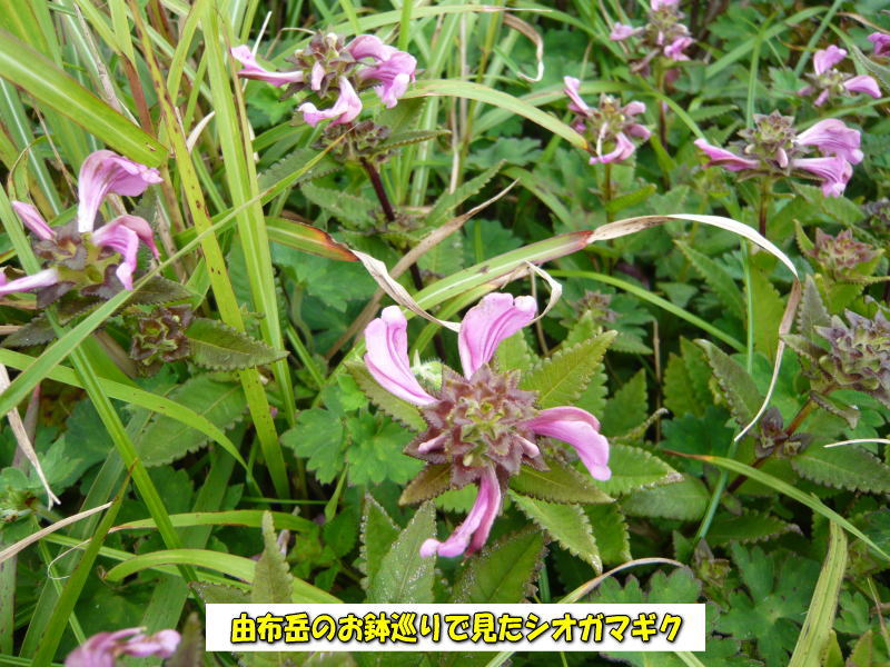 | 西峰の山頂でヤマハハコ | お鉢巡りでシオガマギク | 西峰から下りにタンナトリカブト | オタカラコウ(雄宝香)の群生地も |
